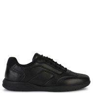 Ανδρικά sneakers σε μαύρο χρώμα της εταιρείας GEOX. Προσφέρουν έναν τέλειο συνδυασμό άνεσης και εμβληματικού σχεδιασμού. Φτιαγμένα από μαλακό δέρμα, η Spherica ξαναγράφει την ιστορία της κατασκευής sneaker με την εμβληματική της κομψότητα και τα εξαιρετικά επίπεδα αντικραδασμικής προστασίας και άνεσης. Είναι η ιδανική επιλογή για όποιον ψάχνει για ένα άνετο μοντέλο που αναπνέει με μοντέρνο σχεδιασμό. Διαθέτουν μαλακό πάτο και ελαφριά, εύκαμπτη, αντιολισθητική σόλα με προηγμένη τεχνολογία SPHERICA TM της Geox που συνδυάζει διάτρητη σόλα και αναπνεύσιμη αδιάβροχη μεμβράνη διατηρώντας το πόδι σε σταθερή φυσική θερμοκρασία και σε συνδυασμό με την επαναστατική εξωτερική σόλα Zero Shock System, προσφέρουν ανώτερη άνεση και ευελιξία αυξάνοντας την απορρόφηση κραδασμών και τριβών δίνοντας ώθηση στο περπάτημα. Η υψηλή αναπνοή βοηθάει στην φυσική ρύθμιση της εσωτερικής θερμοκρασίας, αφαιρώντας την υγρασία από το παπούτσι και εξασφαλίζοντας φρεσκάδα ή ζεστασιά ανάλογα με την εξωτερική θερμοκρασία. Για την υγιεινή και την πρακτικότητα, διαθέτει αφαιρούμενο δερμάτινο ανατομικό πάτο που προσφέρει εξαιρετική αντικραδασμική προστασία απορροφώντας τους κραδασμούς και προσφέροντας άνεση στο περπάτημα, ενώ παράλληλα βοηθάει τα πόδια να αισθάνονται στεγνά όλη την ημέρα.