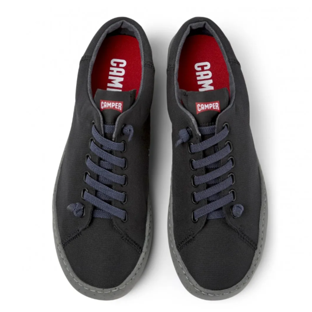 Ανδρικά casual/sneakers Peu Touring σε μαύρο χρώμα της εταιρείας CAMPER. Κατασκευασμένα από ανακυκλωμένο πολυεστέρα, είναι ειδικά σχεδιασμένα σε σπορ γραμμή για χαλαρή εμφάνιση. Ο λειτουργικός σχεδιασμός συναντά την υψηλή μόδα, εξασφαλίζοντας εντυπωσιακή εμφάνιση, διαπνοή, άνεση, εξαιρετικό κράτημα και στήριγμα με μαξιλαράκια. Διαθέτουν πολυλειτουργική αντιολισθητική σόλα που προσαρμόζεται σε όλα τα δάπεδα από EVA με τεχνολογία XL Extralight® για χαμηλό βάρος, ανάλαφρη αίσθηση και απορρόφηση κραδασμών. Ο ανατομικός αφαιρούμενος πάτος με τεχνολογία OrthoLite® Recycled™ απορροφάει τους κραδασμούς και προσφέρει ξεκούραστο, σταθερό και άνετο βάδισμα ενώ παράλληλα προσφέρει φυσική θερμορύθμιση απομακρύνοντας την υγρασία από τα πόδια σας. Οι ραφές 360º προσθέτουν ανθεκτικότητα στο παπούτσι, ενώ τα ελαστικά κορδόνια προσφέρουν άνετη, εύκολη και γρήγορη εφαρμογή.