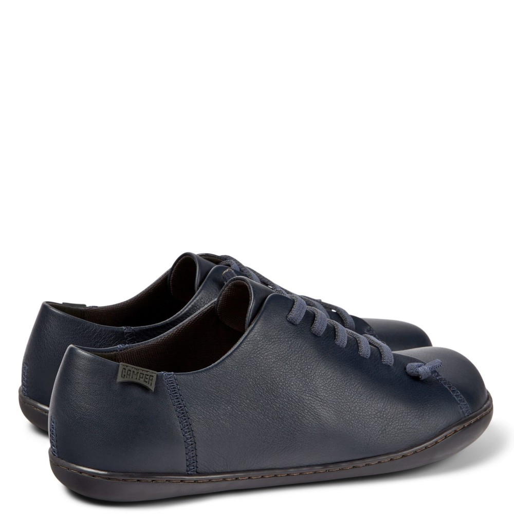 Ανδρικά casual/sneakers Peu Cami σε μπλε χρώμα της εταιρείας CAMPER. Κατασκευασμένα από δέρμα με πιστοποίηση από το Leather Working Group με ειδική τεχνική κατασκευής Strobel, είναι ειδικά σχεδιασμένα σε σπορ γραμμή για χαλαρή εμφάνιση. Τα παπούτσια Peu Cami είναι σχεδιασμένα σύμφωνα με το σχήμα του ποδιού με μοναδική γραμμή που διατηρεί όλα τα πλεονεκτήματα του περπατήματος με γυμνά πόδια. Διαθέτουν ελαφριά εξωτερική σόλα από TPU με τεχνολογία Contact Earth. Ο ανατομικός αφαιρούμενος πάτος με τεχνολογία OrthoLite® απορροφάει τους κραδασμούς και προσφέρει ξεκούραστο, σταθερό και άνετο βάδισμα ενώ παράλληλα προσφέρει φυσική θερμορύθμιση απομακρύνοντας την υγρασία από τα πόδια σας. Οι ραφές 360º προσθέτουν ανθεκτικότητα στο παπούτσι, ενώ τα ελαστικά κορδόνια προσφέρουν άνετη, εύκολη και γρήγορη εφαρμογή.